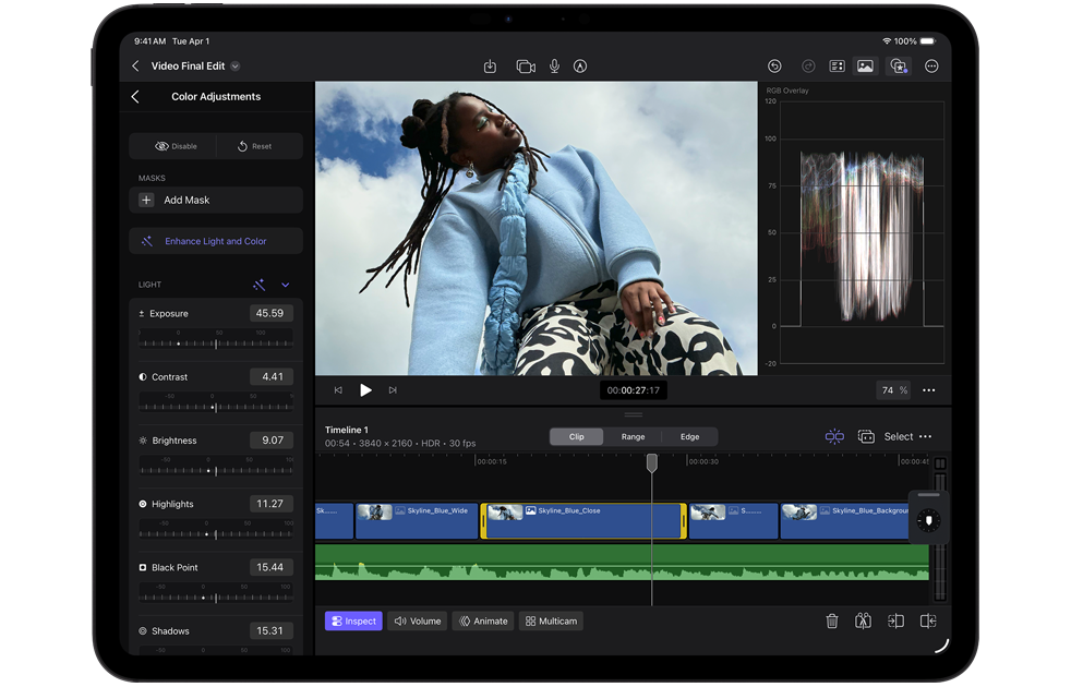 Skyd billeder i Smart HDR, optag ProRes-video i op til 4K, og rediger efterfølgende. Åbn og tilpas større 3D-scener, og kør mere komplekse AI-modeller. Alt sammen med professionelle apps.