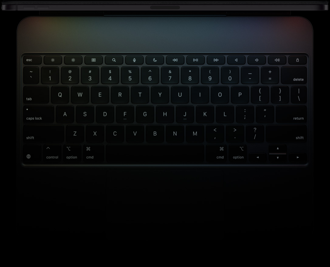 Magic Keyboard har et slankt og bærbart design med håndledsstøtte i aluminium. Det giver dig en fantastisk skriveoplevelse og et hav af muligheder med pegefeltet.11 Tastaturet har en hel række med funktionstaster og et stort glaspegefelt med haptisk feedback til præcisionsarbejde og Multi‑Touch-bevægelser.