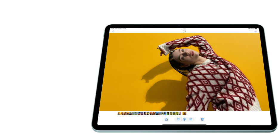 El iPad Air viene en dos tamaños de 11 o 13 pulgadas. Elijas el que elijas, vas a ver el mundo de otro color gracias a la espectacular pantalla Liquid Retina con respuesta inmediata y una imagen en alta resolución brillante a todas luces.