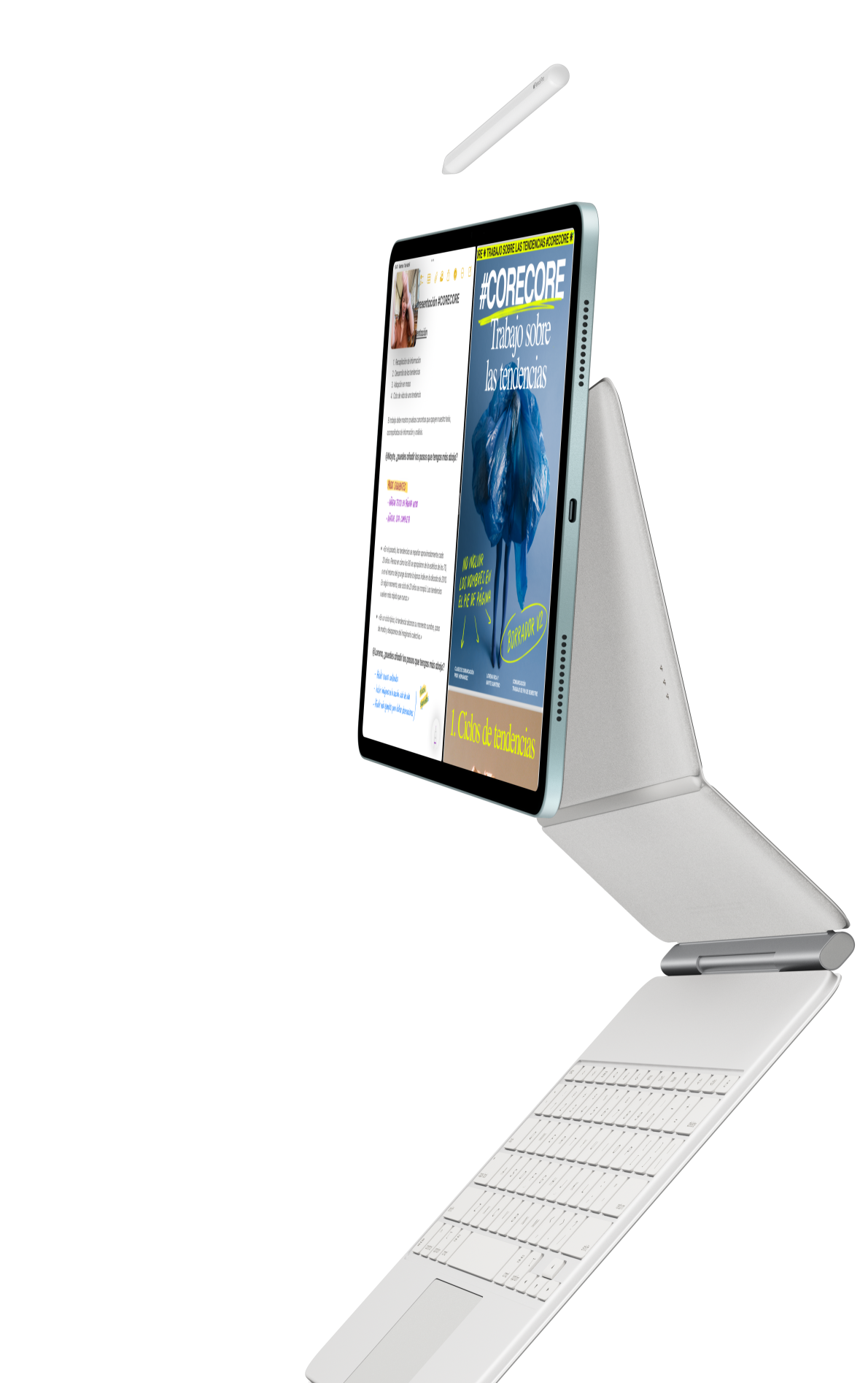 El Apple Pencil se ha convertido en un referente a la hora de dibujar, pintar, escribir y tomar notas. Cada gesto es intuitivo, preciso y casi mágico. Su trazo es inmediato, su precisión es milimétrica, detecta la inclinación y no pasa nada si apoyas la mano en la pantalla. Y con el Apple Pencil Pro tienes aún más funciones para hacer despuntar tu talento3