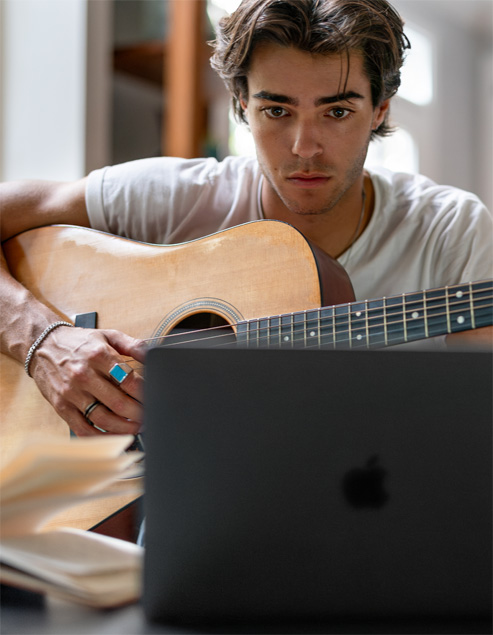 Back at school, Jeng also relies on Mac for his daily production coursework. He uses Pages and Keynote to write scripts, creative treatments and pitch decks for his film classes. And with iCloud, he keeps his projects organised and accessible from anywhere.