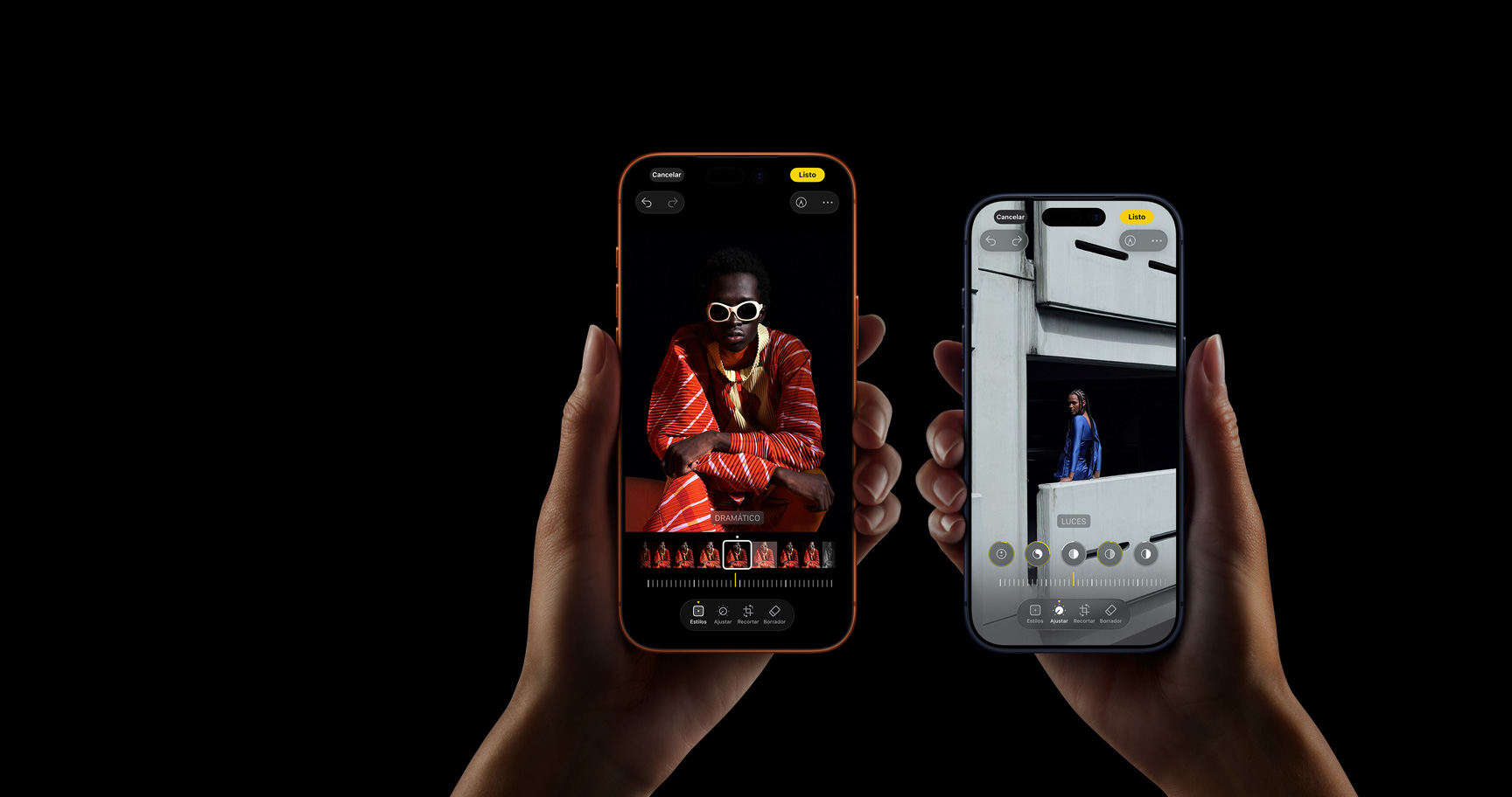 Elige entre diferentes estilos predeterminados, incluida la nueva opción Brillante, para personalizar el tono, el color y el look de tus fotos.