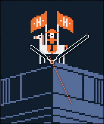 The Faubourg Party never ends with this durable jacquard knit design, featuring a drawing of the historic 24 Faubourg Saint-Honoré store by artist Tibor Kárpáti. The strap is accompanied by 24 watch face animations for around-the-clock fun.