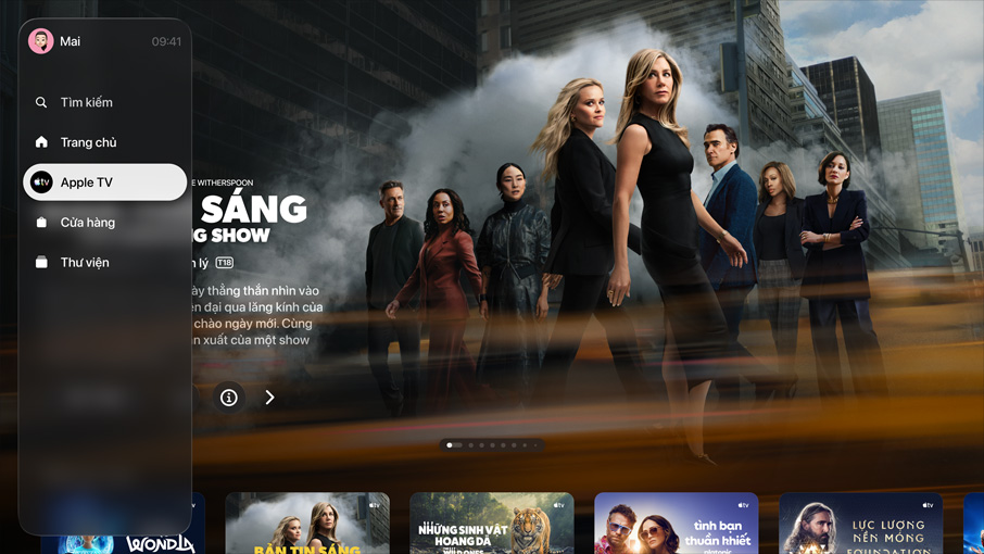 Ứng dụng Apple TV. Xem, thuê hoặc mua tất cả các chương trình và bộ phim bạn yêu thích trong một ứng dụng duy nhất được giới chuyên gia tuyển chọn. Thưởng thức hàng trăm bộ phim và series phim gốc từ Apple TV theo cách chân thực nhất. Đăng ký riêng những kênh bạn muốn xem. Bạn cũng không cần có ứng dụng, tài khoản hay mật khẩu mới cho tối đa sáu thành viên trong gia đình.