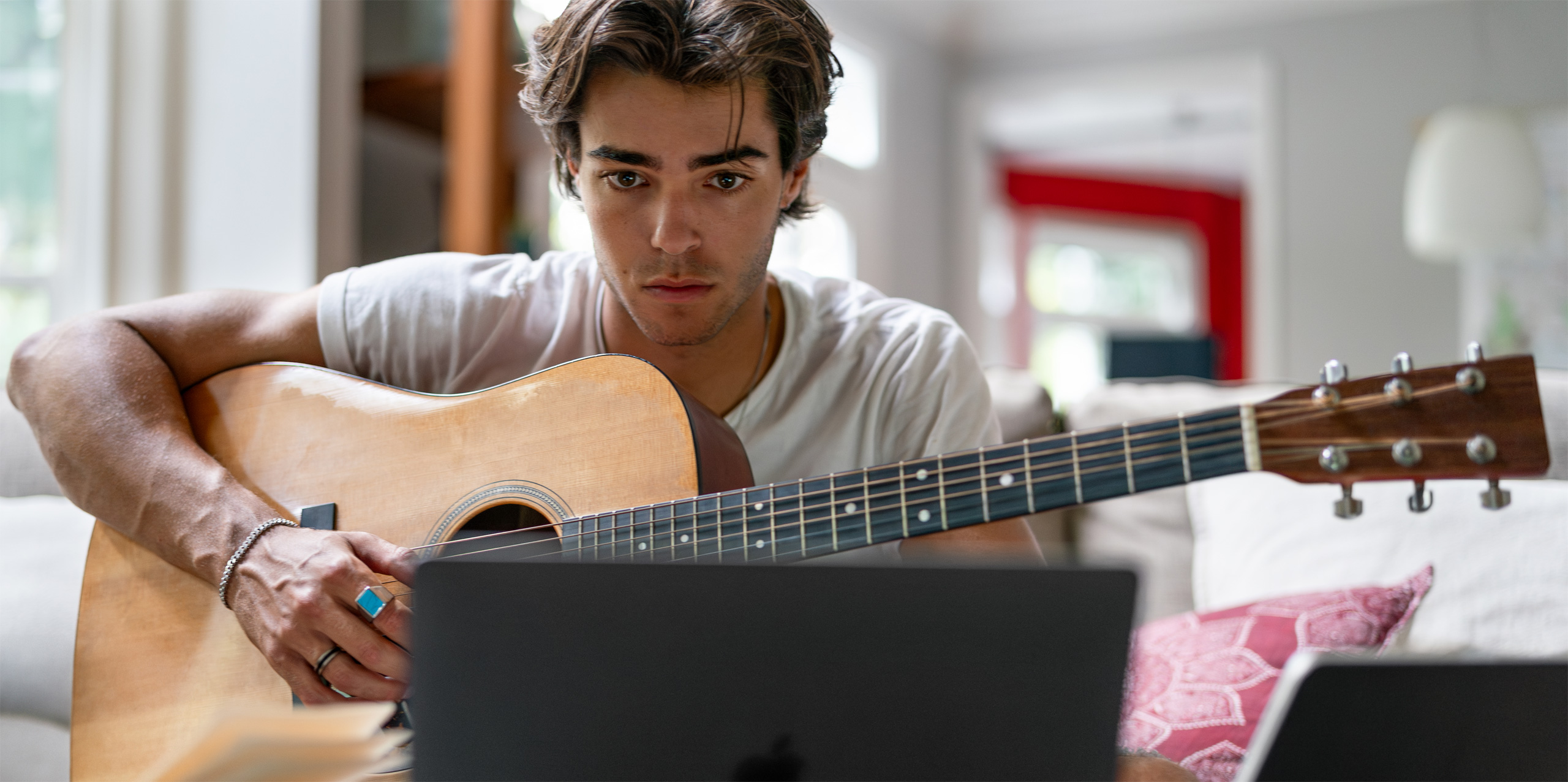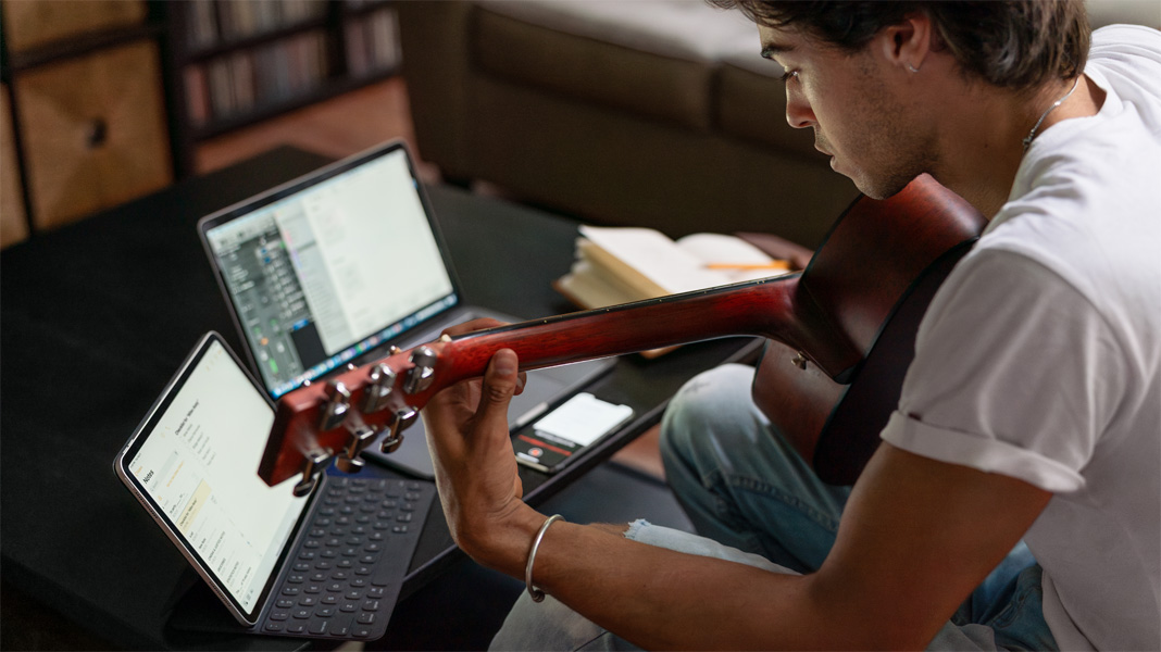 Giống như bao sinh viên khác, Max đã phải thích nghi với việc học từ xa. Hơn bao giờ hết, MacBook Pro đã trở thành chiếc phao cứu sinh của anh. Với phần mềm sản xuất chuyên nghiệp như Logic Pro, MacBook Pro là bạn đồng hành hoàn hảo và là tất cả mọi thứ anh cần để biến phòng ngủ thành phòng thu âm.