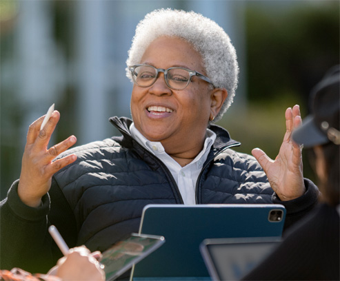 Công nghệ của Apple biến giảng đường của cô thành một bể ý tưởng năng động. Với các tính năng trợ năng tích hợp sẵn, như Đọc Chính Tả và AssistiveTouch, iPad Pro cho phép Tiến sĩ Gopalakrishnan tương tác và minh họa nội dung trong thời gian thực. Bên cạnh đó, Apple Pencil cung cấp cho cô một công cụ tương tác kết hợp cả phác thảo, vẽ và đánh dấu nội dung.